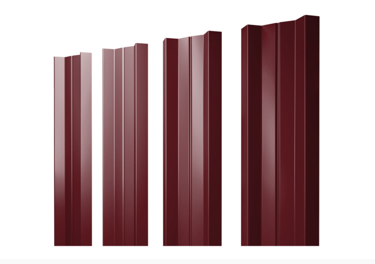 Описание товара: "Штакетник М-образный А с прямым резом 0.45 Drap RAL 3005 красное вино"